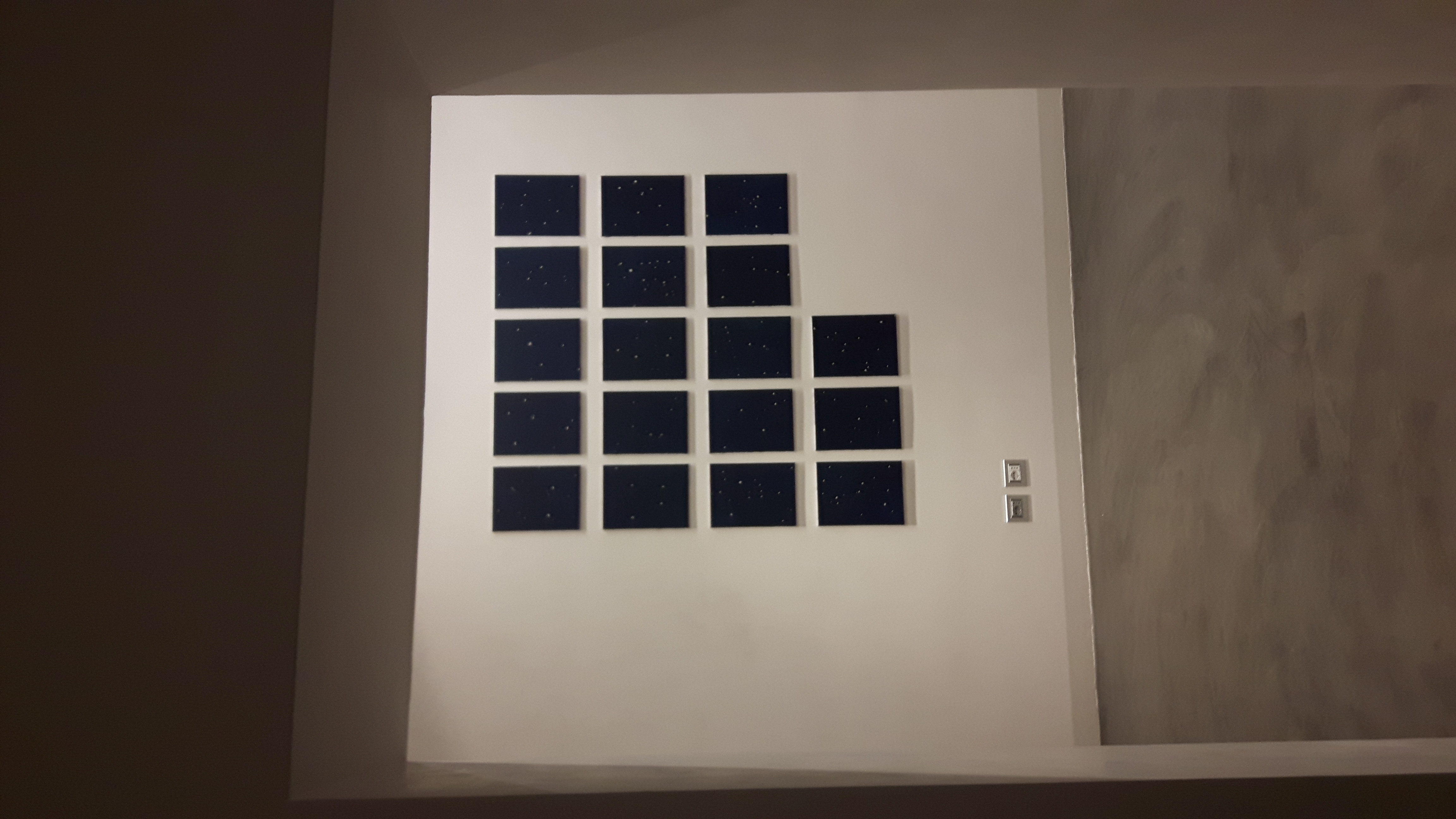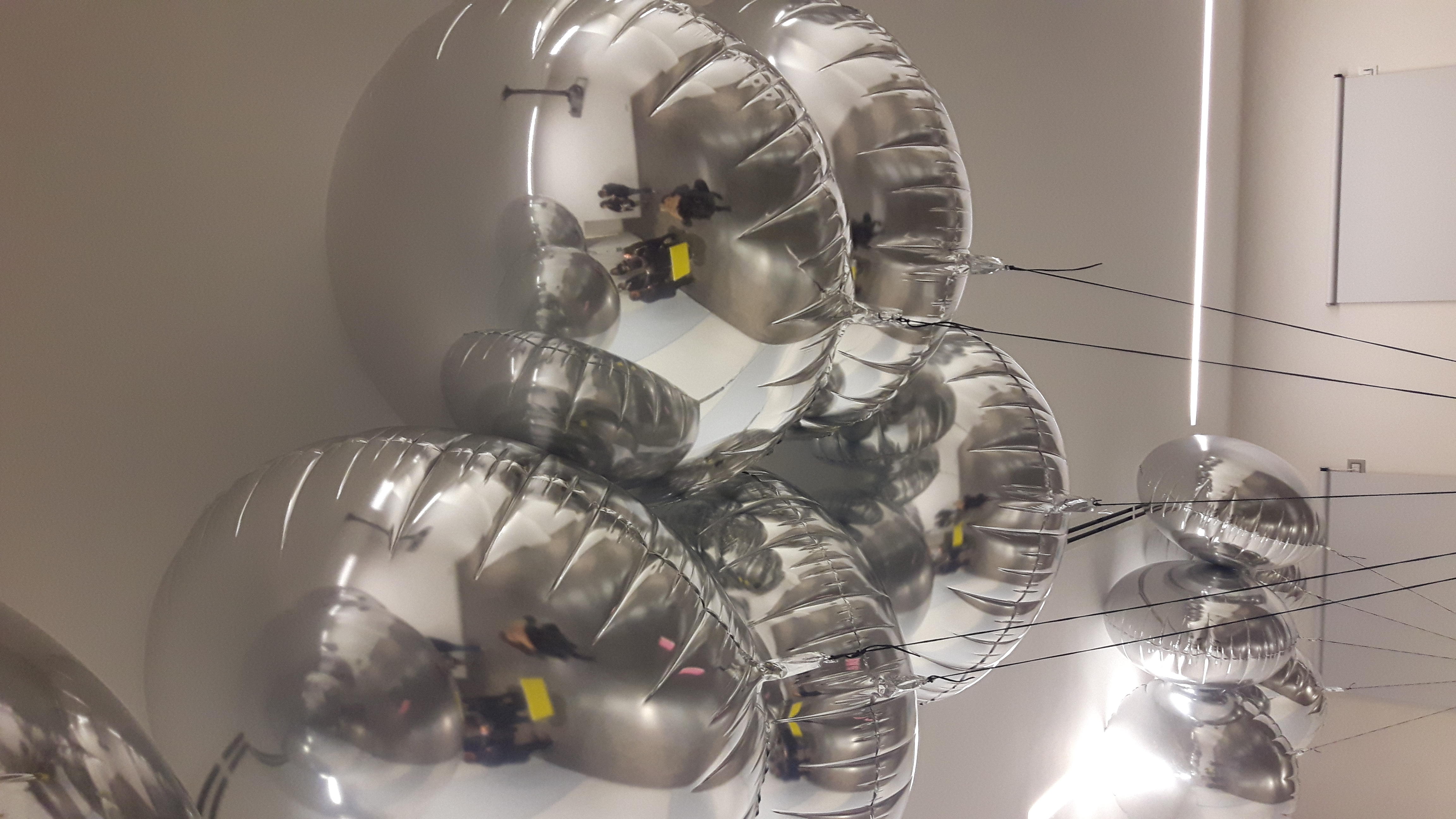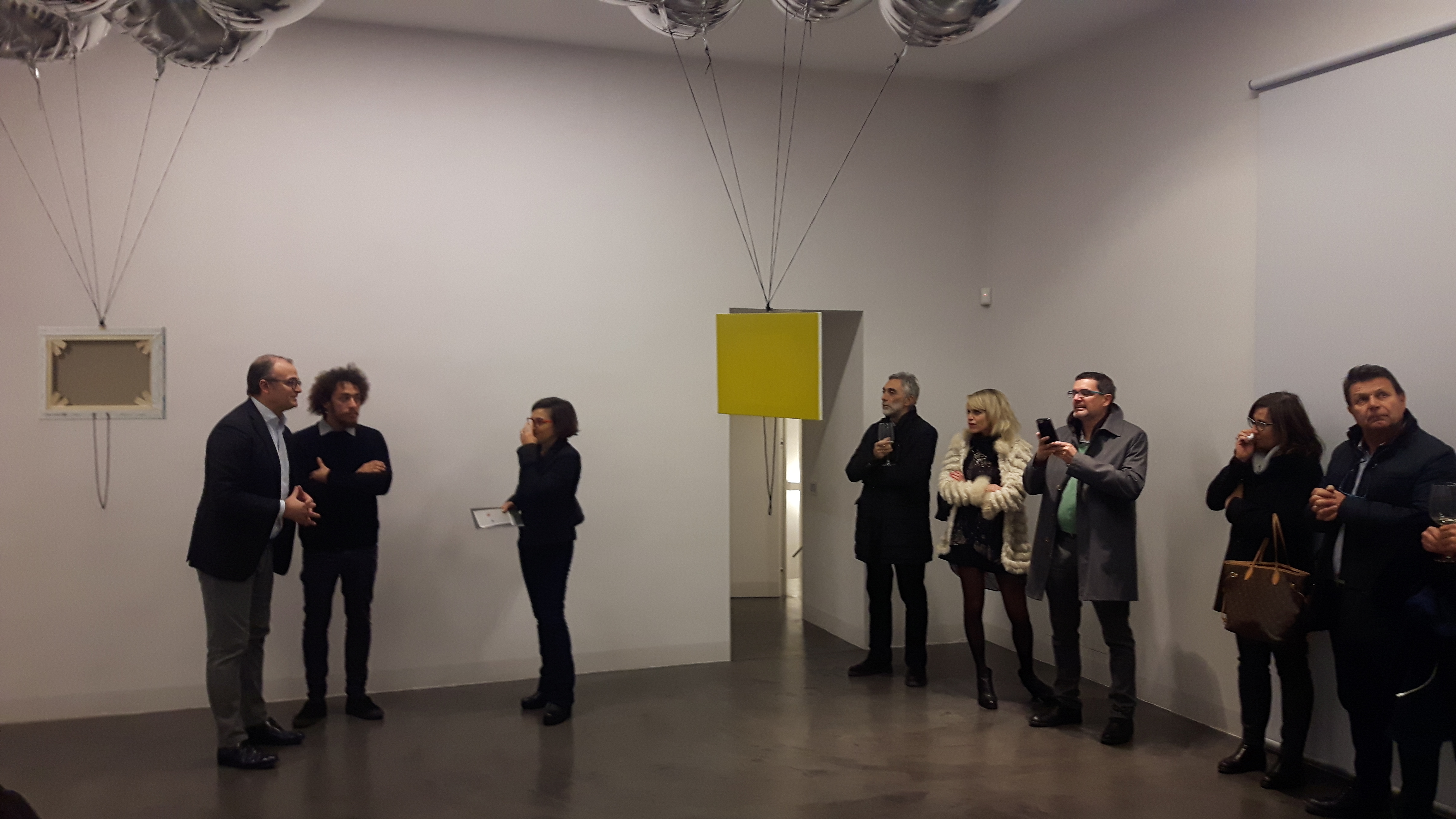 Il gruppo si è ritrovato alle ore 21.00 presso lo Spazio Sanpaolo Invest di Treviglio dove è stato accolto dall’artista, dalla curatrice Sara Fontana e da Dario Bonetta, della galleria bresciana AplusB, che segue il lavoro di Davide, e guidato nella visita della mostra, in cui protagoniste sono composizioni di dipinti che misurano trenta centimetri su un lato e quaranta sull’altro, espressioni della volontà dell’artista di fuoriuscire dalla canonica dimensione del quadro per esplorare lo stesso attraverso linguaggi plurimi, talvolta ironici, che confluiscono infine nell’installazione.